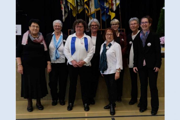 Le comité d’organisation, de g. à dr.: Marlyse Vojtasik, Mireille Baudevin (présidente), Myriam Egger, Nicole Berger, Brigitte Gillet, Martine Godel, Catherine Fornerod et Lætitia Vonlanthen.
