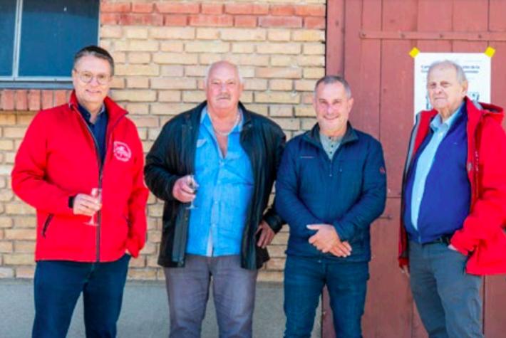 L’équipe de l’ancien abattoir avait préparé un apéro en fin de visite. De gauche à droite: Rémy Gilliand, Robert Schafer, Gérard Michel et JeanClaude Juriens