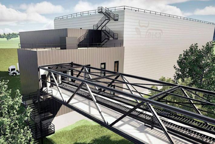 La nouvelle halle de stockage sera reliée au bâtiment actuel par une passerelle. PHOTO IMAGE DE SYNTHÈSE/ELSA GROUP