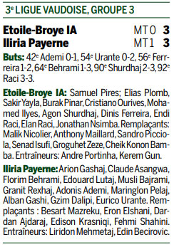 EtoileBroye a arraché un point in extremis mais mérité dans les arrêts de jeu, samedi à Lucens face à Iliria Payerne.