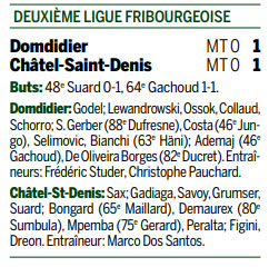 Après deux défaites de rang, Domdidier a stoppé l’hémorragie samedi dernier à domicile face à Châtel-Saint-Denis.