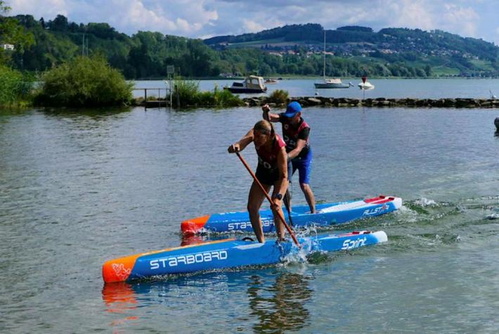 La plage de Salavaux accueille depuis quelques années des courses de stand up paddle, soutenues notamment par Vully-les-Lacs Tourisme. PHOTO JEAN-MICHEL ZUCCOLI/ARCHIVES